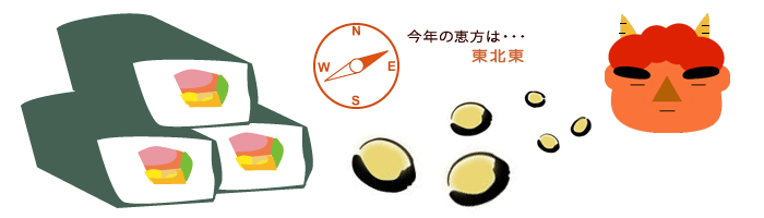 関西方面から伝わったとされる「その年の恵方(縁起の良い方角)を向いて太巻きをまるごと無言でかじる」という風習が最近人気ですよね。節分に合わせて様々な美味しそうな太巻きがお店にたくさん並ぶようになったので、食いしん坊の私としては嬉しい限り!太巻きを切らずにまるごと食べる のは「縁を切らない」ためで、無言で食べるのは静かに行わないと恵方を司る歳徳神に失礼だから、という説が有力なようです。