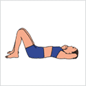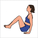 ああおむけでひざを立て、両手で頭部を抱えてヘソをのぞきこむように上体を起こす。