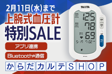 - 2020年3月現在「からだカルテ」へのデータ転送はタニタ商品の専用計測機器と一部の血圧計のみが対象となります。専用機器以外で測定したデータは「Myデータ」ページから手入力していただくことも可能です。