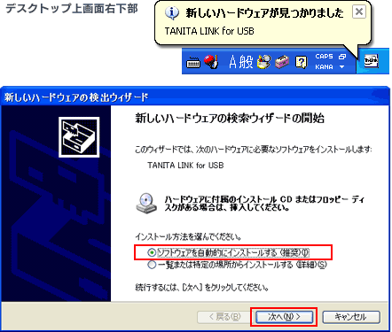 [ソフトウェアを自動的にインストールする(推奨)]をチェックし、[次へ(N)]を選択します。