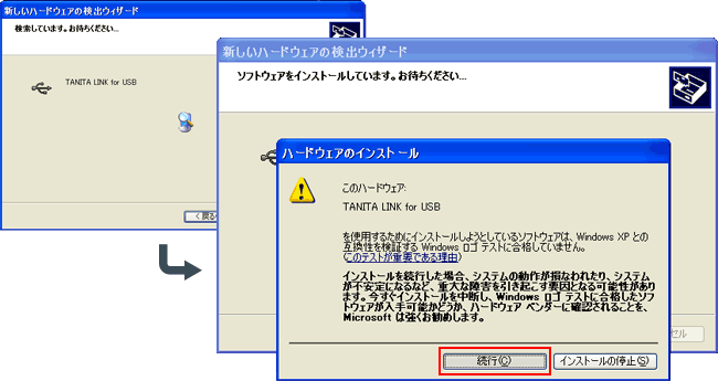 必ず、[続行(C)]を選択してください。