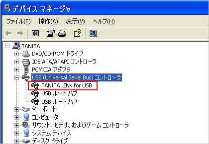 デバイスマネージャ画面内のUSB階層[TANITA LINK for USB]をダブルクリックし、プロパティ画面を表示させます。